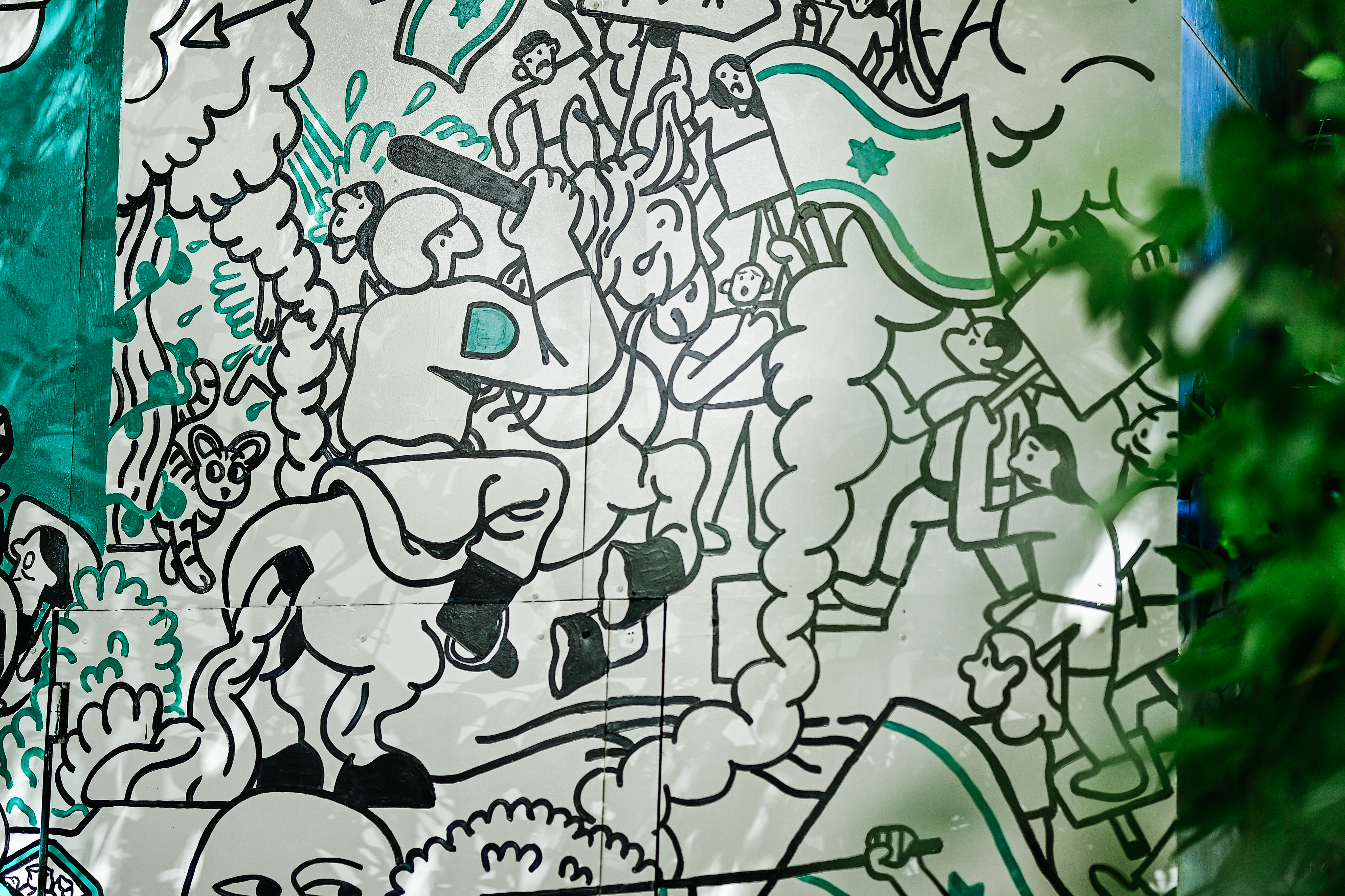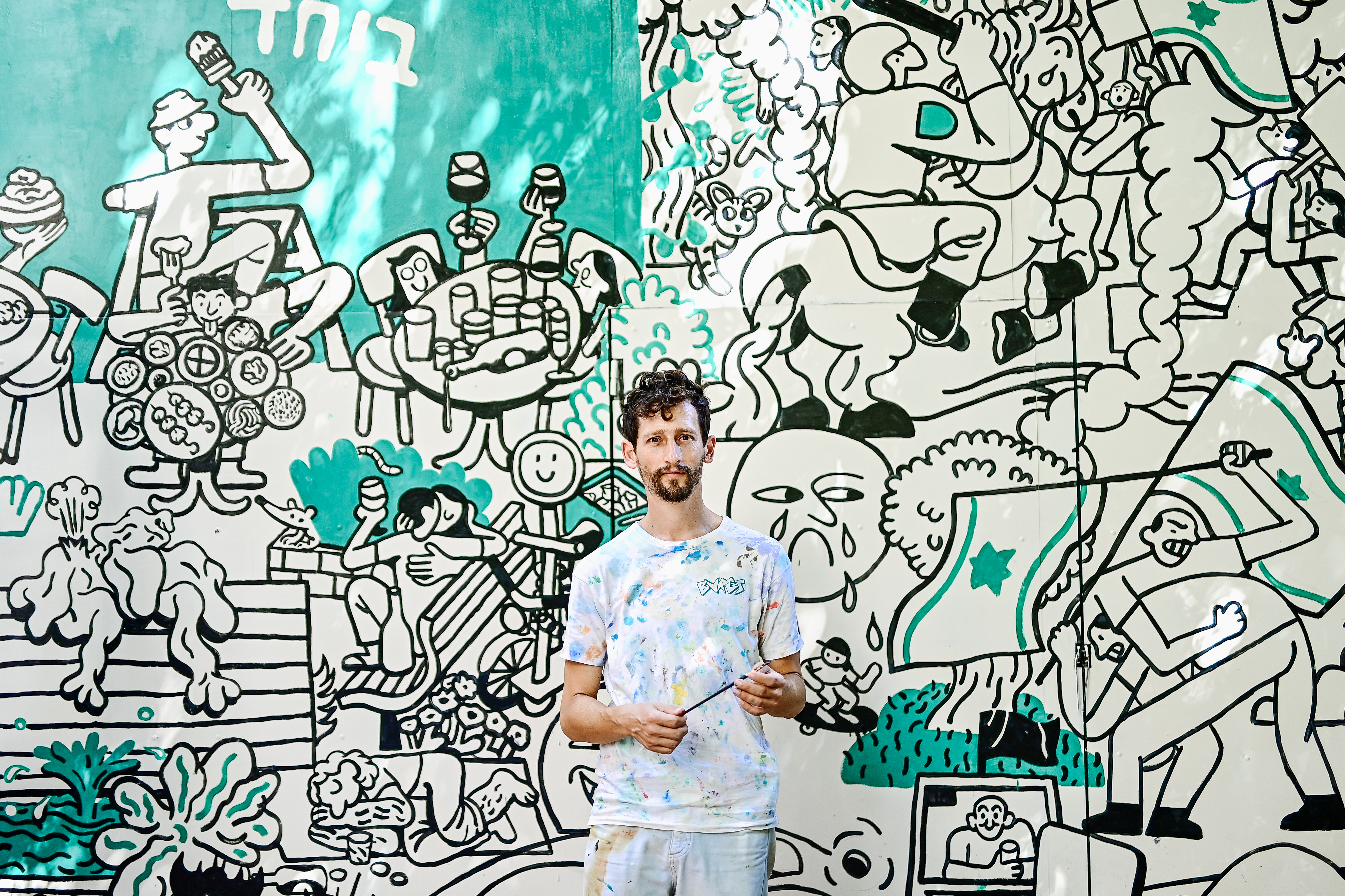 A mural in Tel-Aviv city center, which depicts my view of the city life in Tel-Aviv, right now. Including war, protests, the current mood and hopes for the future.